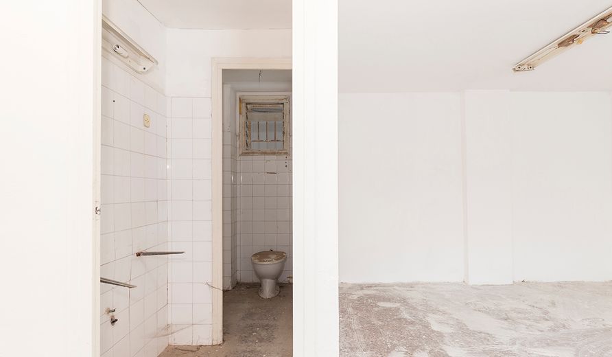 Planta diáfana con suelos de parqué, un baño e iluminación.